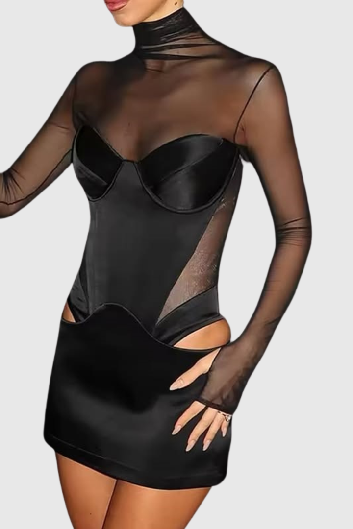 Elevate your evening wardrobe with the Tomas Mesh Cutout Mini Dress, a striking piece that seamlessly blends modern edge with timeless elegance. Featuring strategically placed mesh cutouts that create visual intrigue, this mini dress offers a flattering silhouette perfect for nights out or special occasions. The sophisticated design balances allure with refinement, making it an ideal choice for those who appreciate contemporary fashion with a touch of glamour. Versatile enough to dress up with heels and statement jewelry or down with sleek accessories, this dress is a wardrobe essential for the discerning woman.