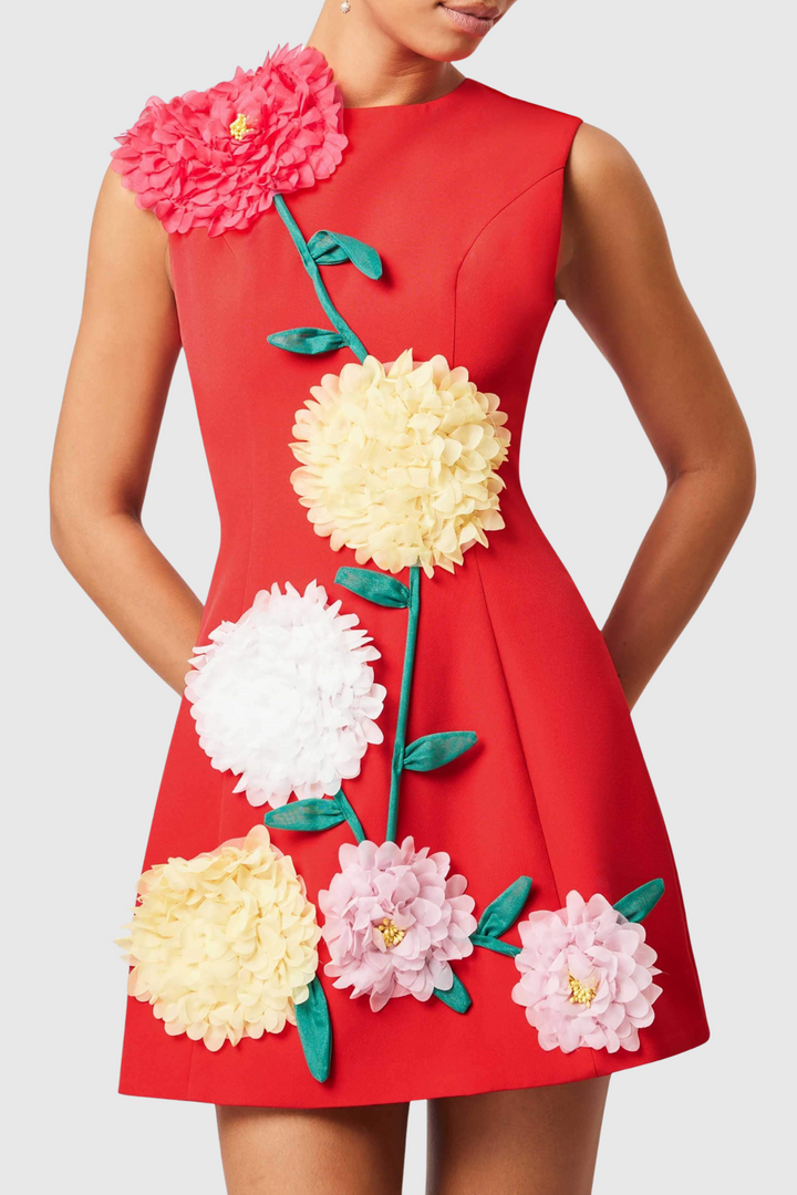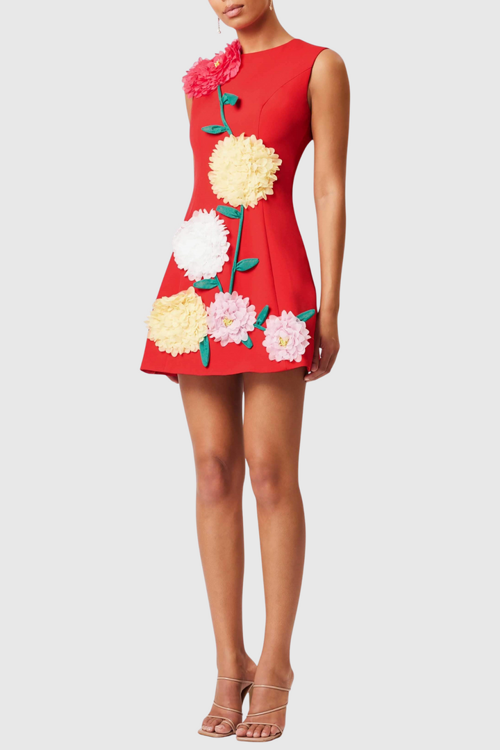 Trevia Floral Appliqué Sleeveless Mini Dress - Red