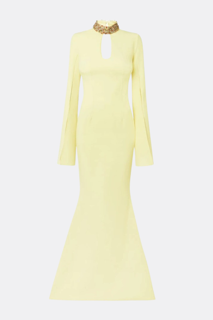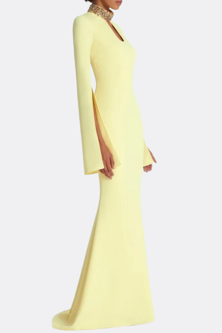 Tuliay Diamante Embellished Cutout Maxi Dress - Yellow