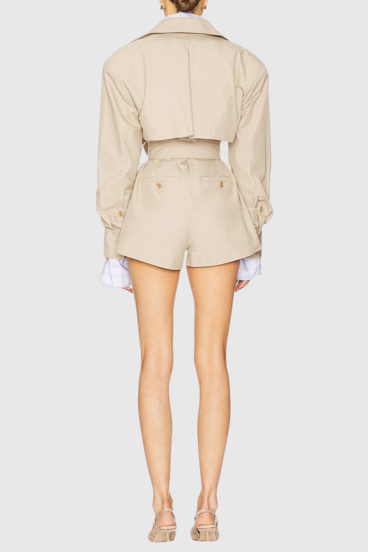 Elevate your wardrobe with the Tycho Asymmetrical Trench Style Playsuit, blending modern tailoring with refined elegance. Its unique asymmetrical design and trench-inspired details offer a sophisticated silhouette, perfect for making a poised statement at any occasion. Crafted for both style and comfort, this playsuit seamlessly transitions from day to night with effortless charm.