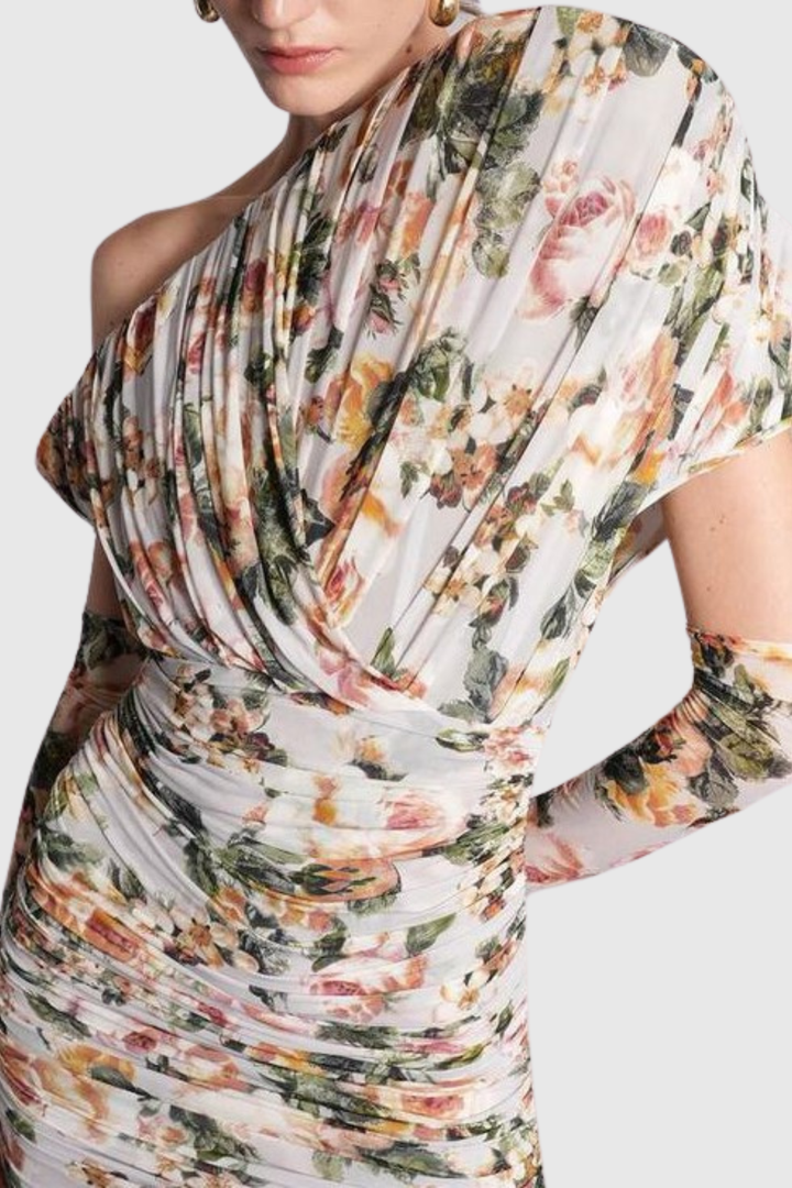 Tyson Floral Print Asymmetric Ruched Mini Dress