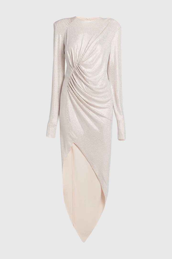 Vetaya Crystal Embellished Asymmetrical Midi Dress - Beige