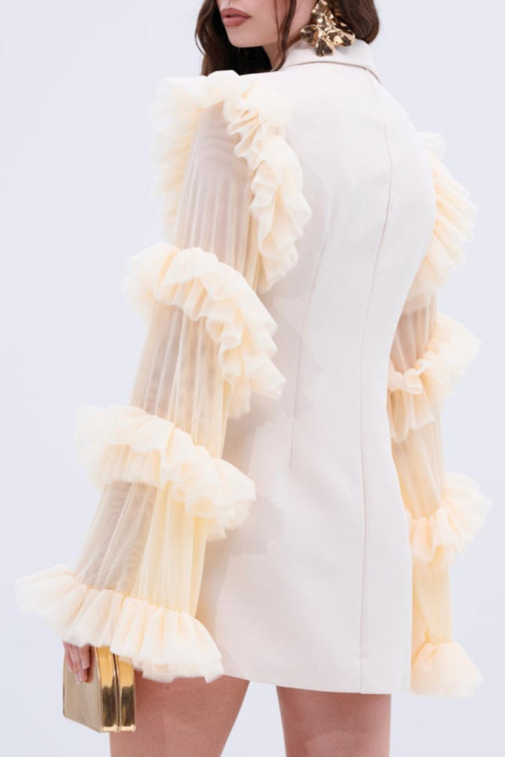 Viha Ruffle Sleeve Blazer Mini Dress - Beige