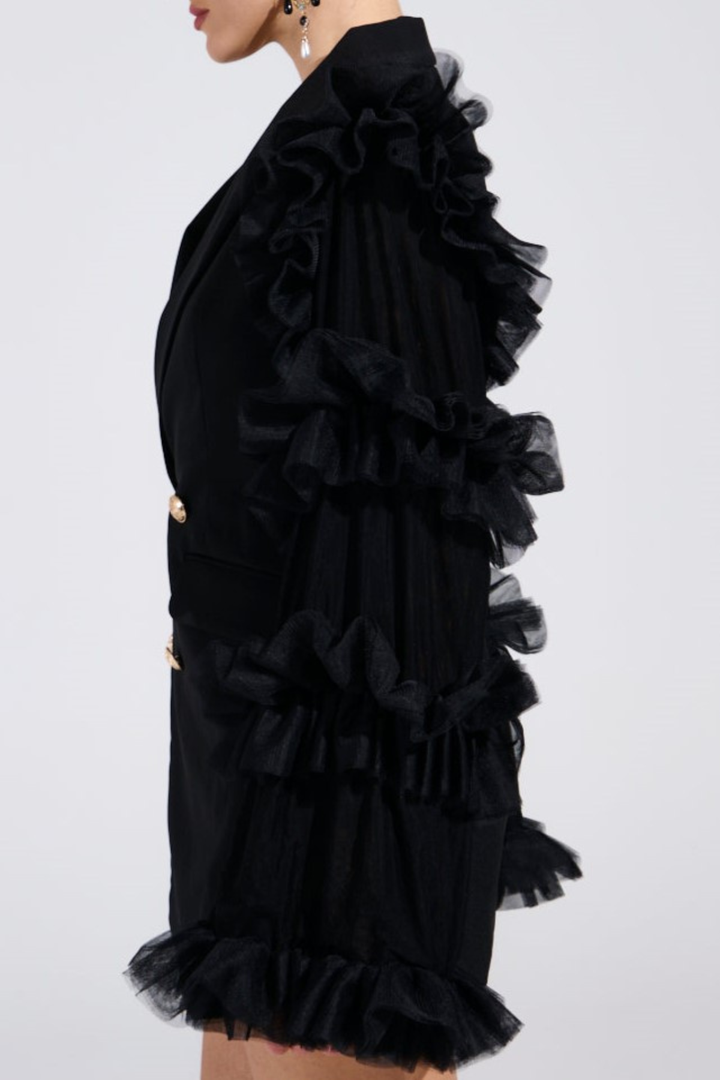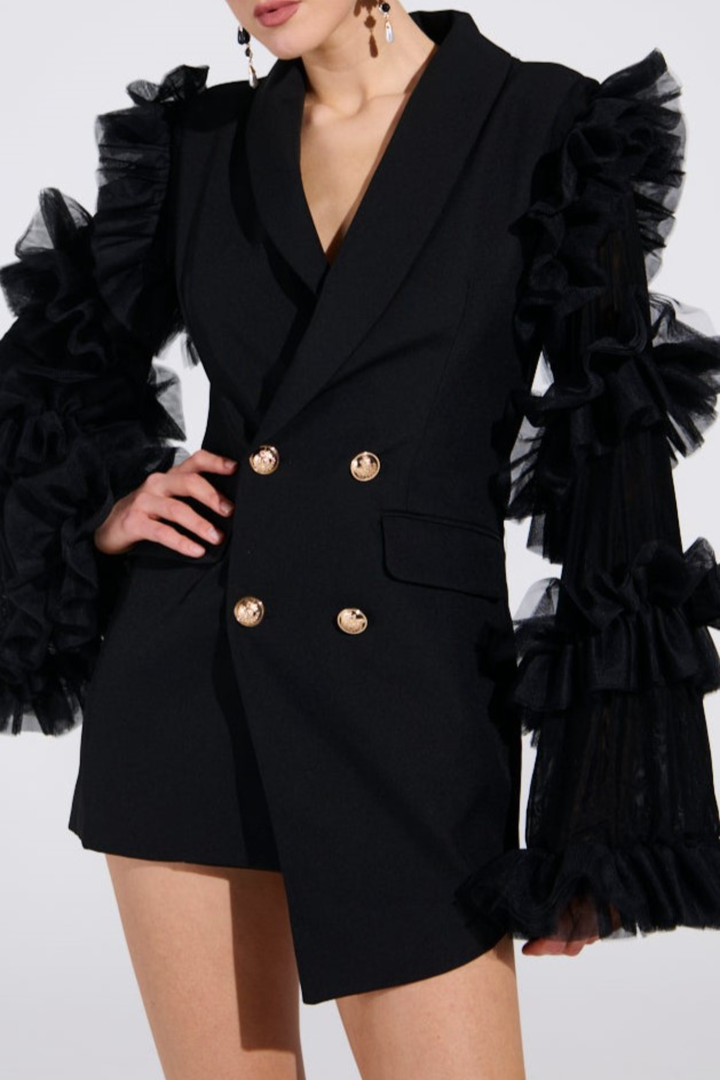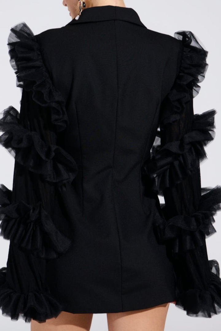 Viha Ruffle Sleeve Blazer Mini Dress - Black