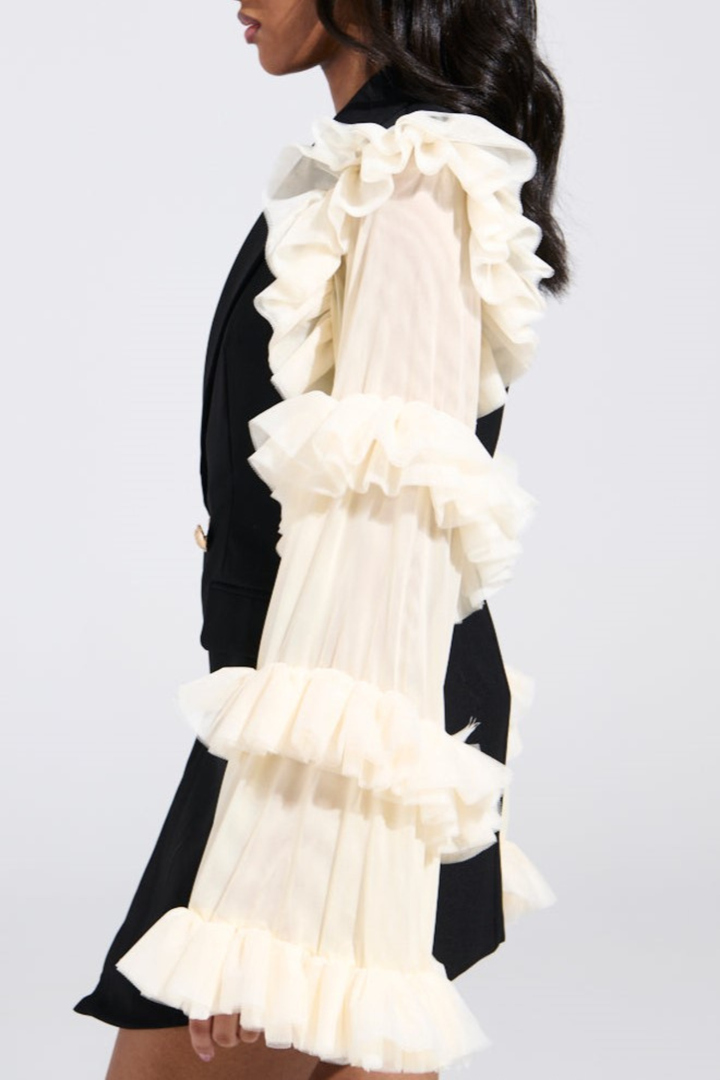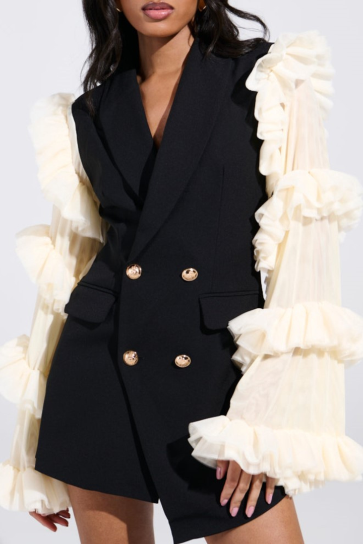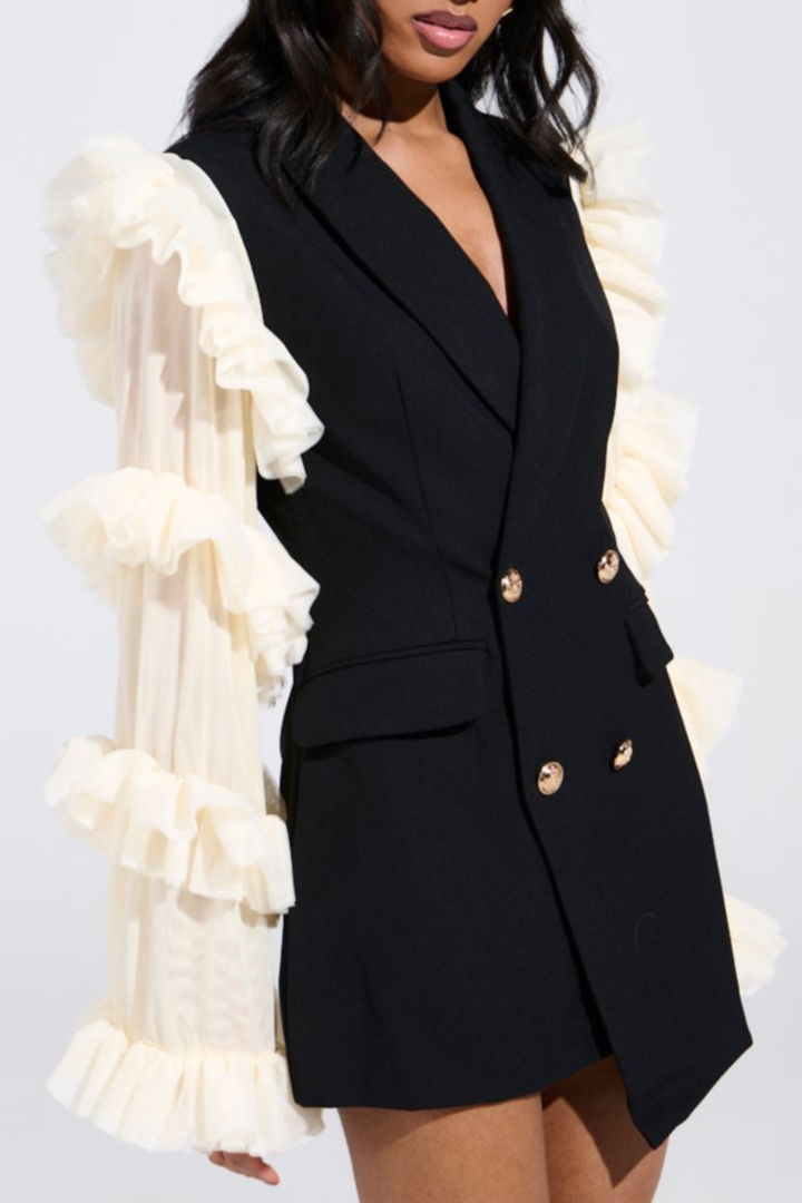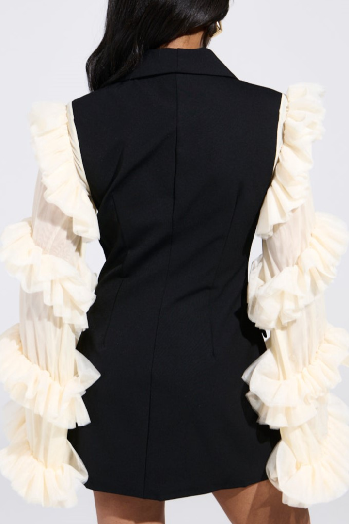 Viha Ruffle Sleeve Blazer Mini Dress - Black&Beige