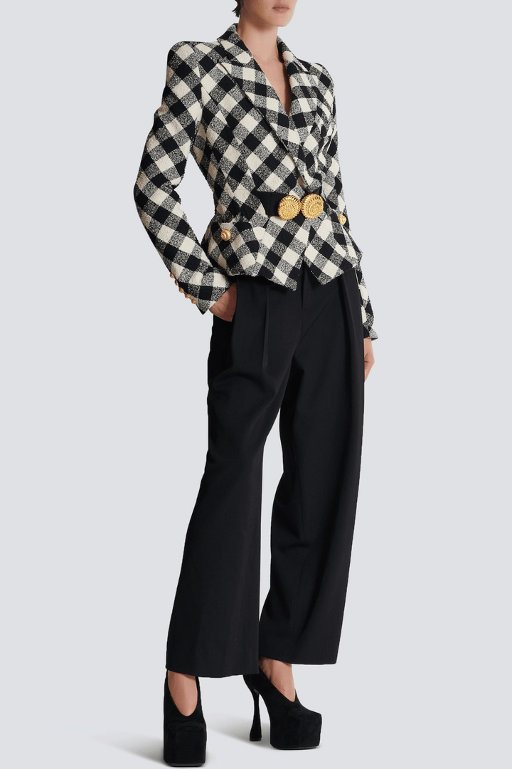 Elevate your style with the versatile and timeless Wyatt Gingham Button Blazer. Crafted with high-quality materials, this blazer features a classic gingham pattern and button closure for a sophisticated and polished look. Perfect for any occasion, this blazer will add a touch of elegance to your outfit.
