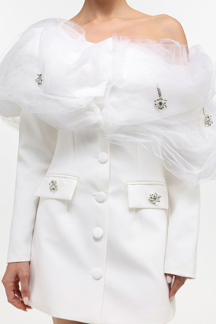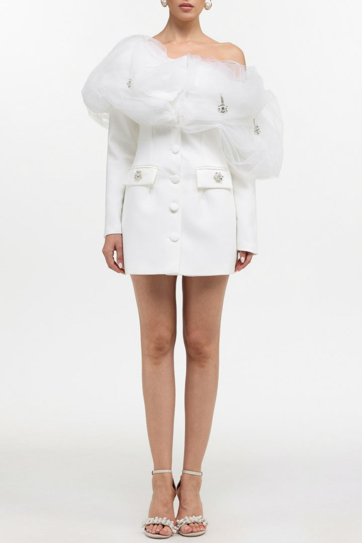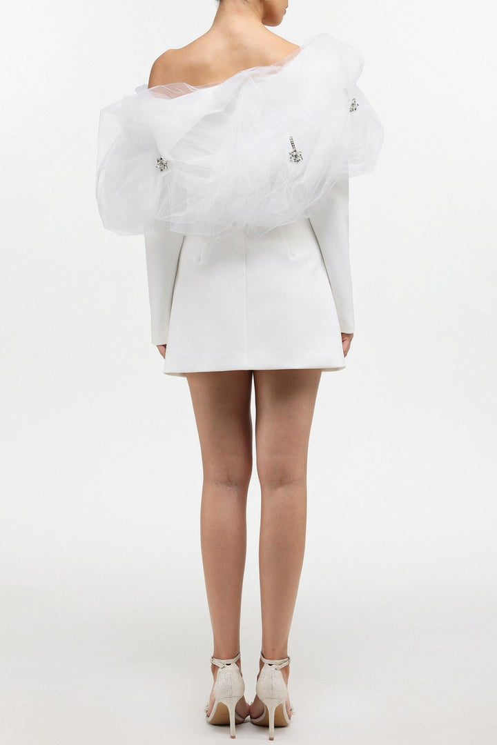 Zada Mesh Cloud Off Shoulder Mini Dress - White