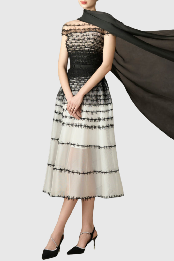 Zaida Off Shoulder Mesh Midi Dress