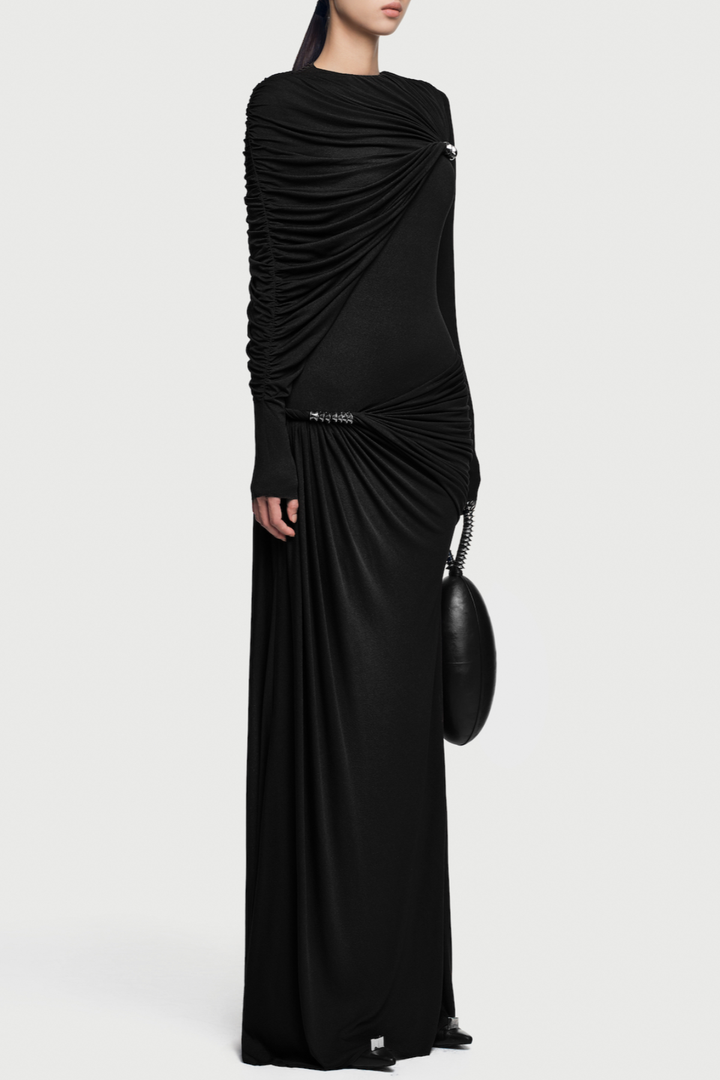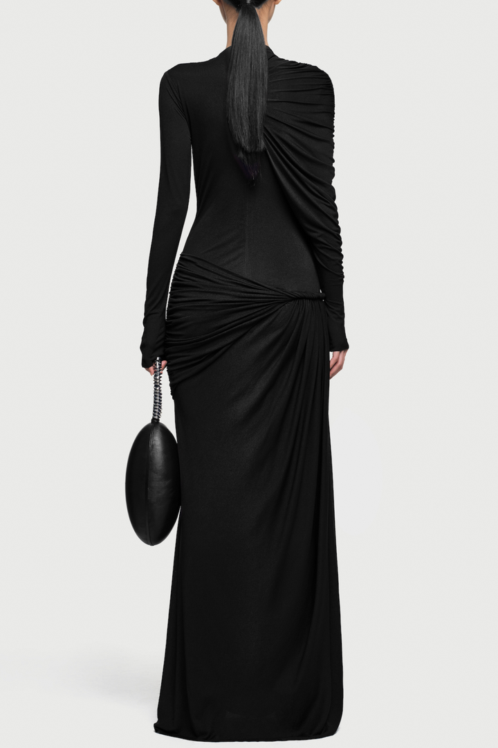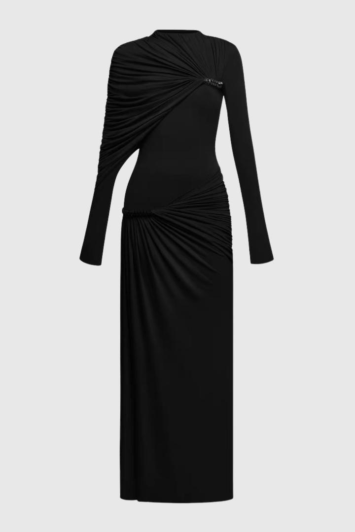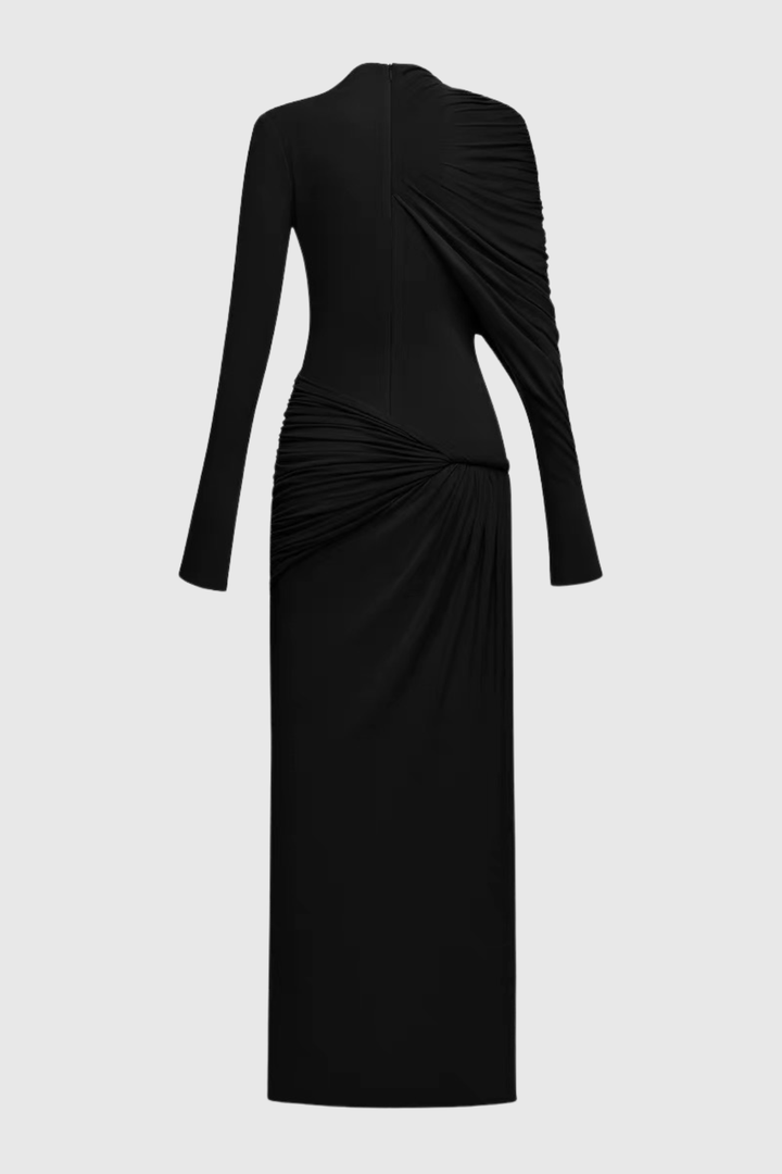 Zamir Asymmetric Ruched Maxi Dress - Black