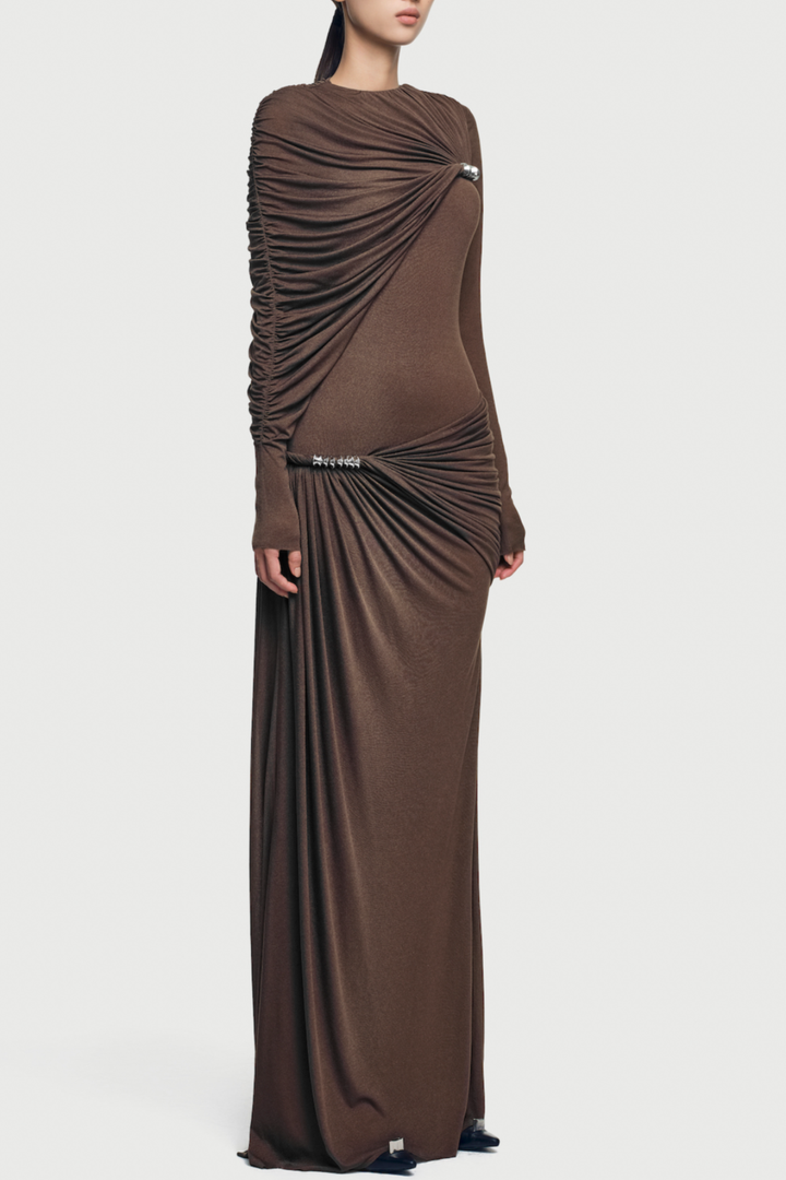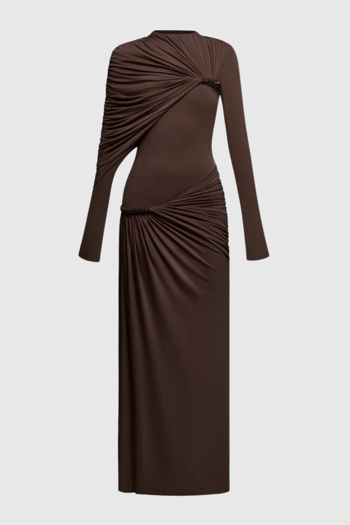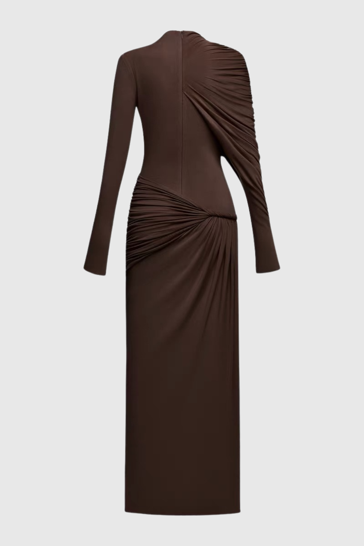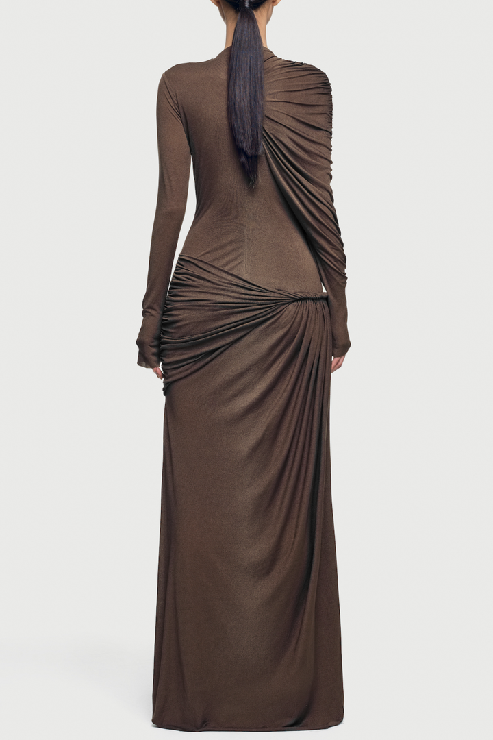 Zamir Asymmetric Ruched Maxi Dress - Brown