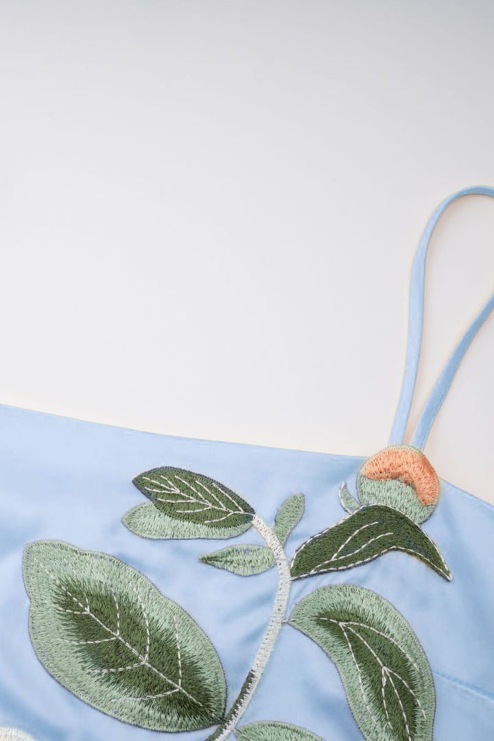 Zaniah Floral Embroidered Satin Mini Dress - Blue
