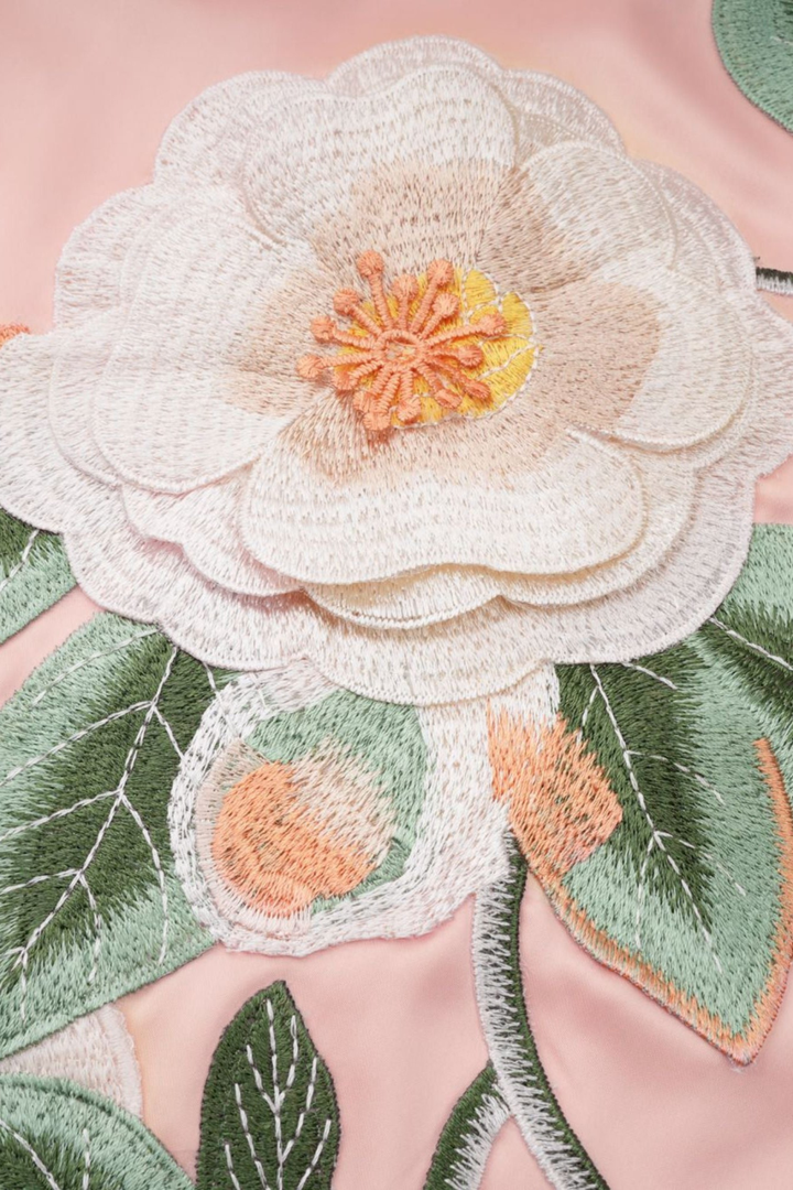 Zaniah Floral Embroidered Satin Mini Dress - Pink