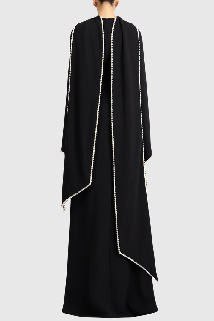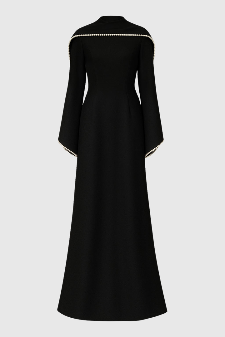 Zisel Pearl Trim Shawl Maxi Dress - Black