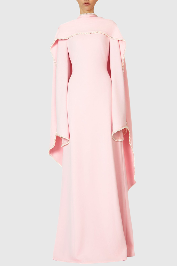 Zisel Pearl Trim Shawl Maxi Dress - Pink